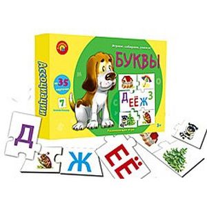 Развивающие игры серии 'Ассоциации' предназначены для малышей в возрасте от 3-х лет для занятий дома и в детском саду. Дети с пользой и удовольствием проведут время, подбирая нужные карточки-пазлы. Эта серия способствует развитию мелкой моторики рук, речи, внимания и памяти. Игра 'Азбука' познакомит детей с буквами, научит соотносить букву и предмет, который начинается на эту букву и который изображён на картинке. Ребёнок выучит алфавит и пополнит свой словарный запас.