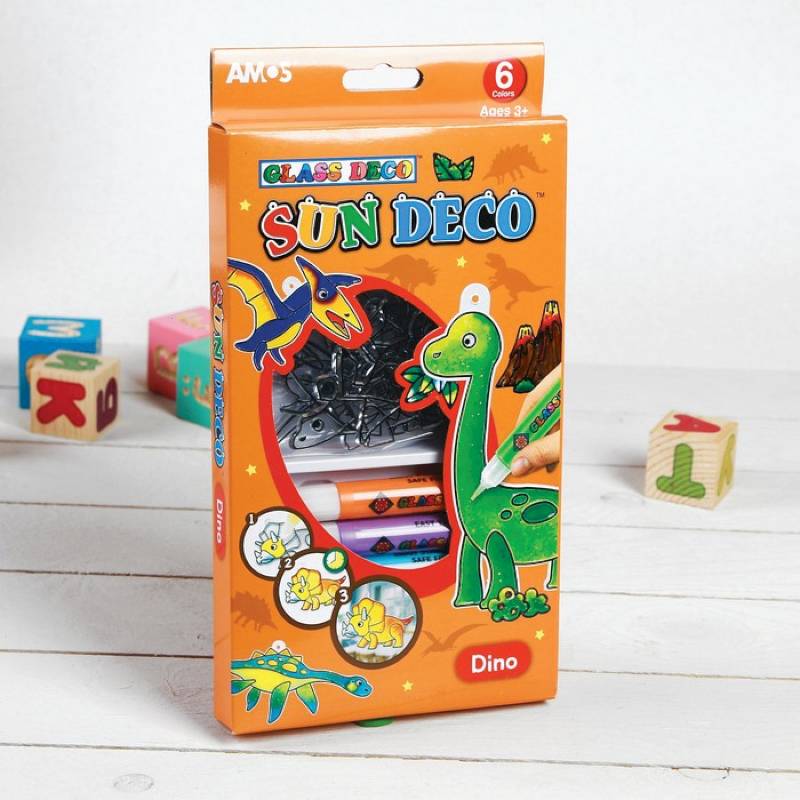 —Набор витражных красок 'Динозавры', 6 цветов по 10,5 мл + 6 мини-витражей
