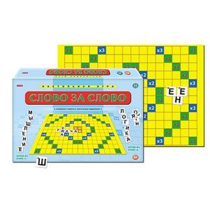Настольная игра 'Слово за слово' - отличный способ приятно провести время, заодно расширив свой словарный запас. Цель игроков - создание кроссворда из слов таким образом, чтобы набрать наибольшее количество очков. Игроки по очереди выкладывают карточки с буквами на поле, составляя слова. Тот из них, кто набрал наибольшее количество очков, побеждает в игре. Предназначено для 2-4 игроков в возрасте от 6 лет.