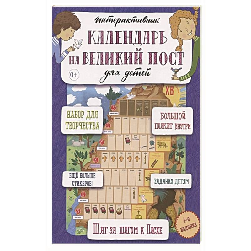 В набор входит: основа для настенного календаря 580х420 мм, 60 стикеров, брошюра, в которой родители найдут понятные и практичные объяснения, что такое Великий пост и как провести это время с детьми. Настенный календарь на Великий пост для детей может быть использован во время семейных и школьных уроков по Закону Божию и основам православной культуры