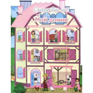 Книжка сделана в форме домика с прорезанными окошками и запирается замком-резинкой. Домик на обложке и наклейки внутри сверкают и переливаются словно по волшебству!