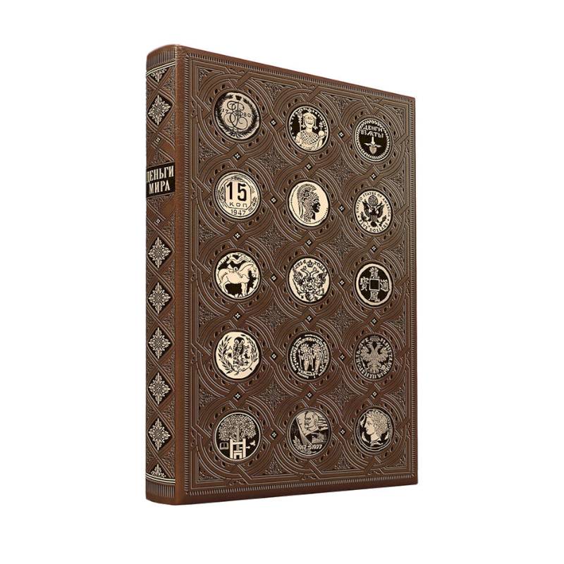 —Деньги мира: занимательные факты, курьезы, истории. Коллекционное издание, отпечатанное на бумаге премиум-класса и переплетённое вручную по старинной технологии с двумя видами тиснения и узорными дублюрами