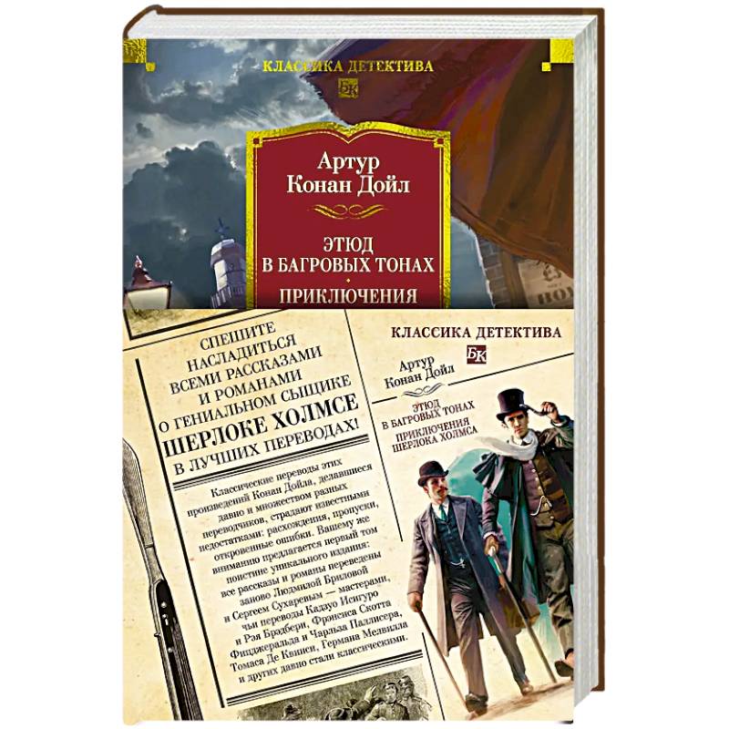 Английский врач и писатель сэр Артур Конан Дойл известен всему миру как непревзойденный мастер детективного жанра, автор множества произведений о гениальном сыщике Шерлоке Холмсе и его верном друге докторе Ватсоне. Классические переводы этих рассказов и романов, делавшиеся давно и множеством разных переводчиков, страдают известными недостатками: расхождения, пропуски, откровенные ошибки. Вашему вниманию предлагается первый том (роман «Этюд в багровых тонах», сборник «Приключения Шерлока Холмса») из четырехтомника с полным переводом всего холмсовского канона. Это воистину уникальное издание: все произведения цикла переведены заново Людмилой Бриловой и Сергеем Сухаревым — мастерами, чьи переводы Кадзуо Исигуро и Рэя Брэдбери, Фрэнсиса Скотта Фицджеральда и Чарльза Паллисера, Томаса Де Квинси, Германа Мелвилла и других давно стали классическими. При этом каждый том снабжен большим числом классических рисунков и дополнительными материалами: предисловия к ранним публикациям, воспоминания Конан Дойла, касающиеся тех или иных произведений, некоторые интервью писателя.