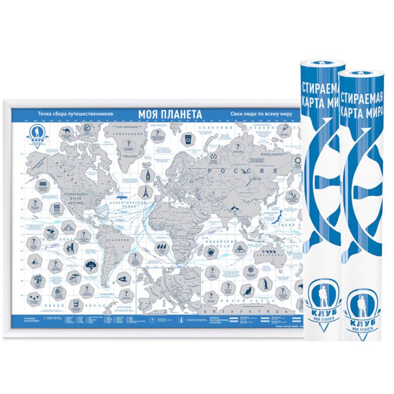 Специальное изданиее популярной скретч-карты мира. Карта и тубус оформлены в узнаваемом стиле клуба и телеканала 'Моя планета'. Скретч-карта содержит массу интересных вопросов и ответов в виде интерактивной викторины. Вся информация для скретч-карты Мира подготовлена клубом 'Моя планета', что делает карту такой-же интересной и как и полюбившиеся передачи на любимом теле-канале. Карта Мира покрыта серебряной, стирающейся скретч-краской в стильном, циллиндрическом тубусе, с металлическими крышками, окрашенными в цвет тубуса. Стирая серебряную краску с территории посещенной страны, Вы делаете ее цветной и заодно открываете много новых и интересных фактов. Скретч-карта 'Моя планета' долгожданный подарок для всех кто не стоит на месте!