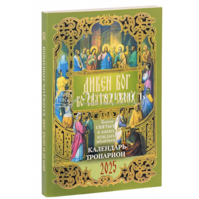 Предлагаемое издание представляет собой православный церковный календарь-тропарион на 2025 год, который содержит тропари, кондаки и величания на каждый день, кроме того, молитвословия воскресные, восьми гласов, прокимны и причастны разные, даты Православных Церковных праздников в 2025 году. (Даты приводятся по новому и старому стилям)