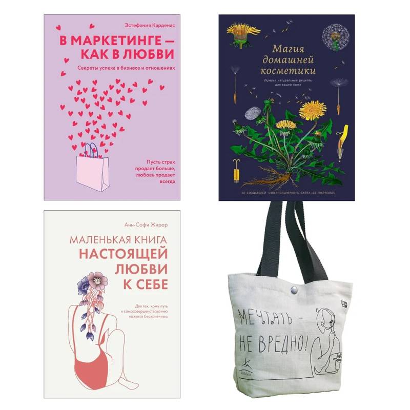 В комплекте вы найдете 3 вдохновляющие книги, которые помогут полюбить себя, улучшить отношения и заботиться о своей коже естественным образом.