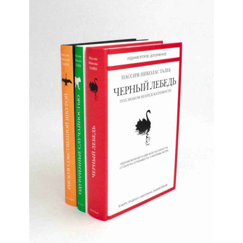 Комплект из 3-х книг известного эссеиста, математика и трейдера Нассим Николаса Талеба. В сферу его интересов входит эпистемология (раздел философии, изучающий основания знаний) случайности, а также междисциплинарные задачи на неопределенность и знание, особенно в связи с серьезными, трудно предсказуемыми событиями. Одним из первых заинтересовался механизмами торговли производными финансовыми инструментами.