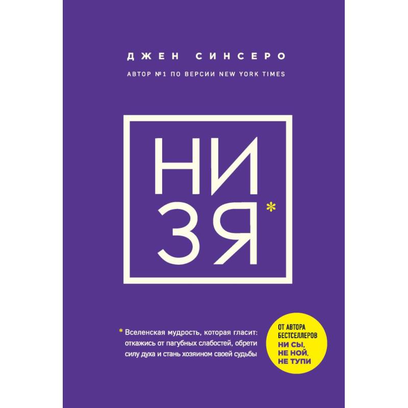 Книги Джен Синсеро стали мировым феноменом. «НИ СЫ» вот уже более трех лет находится в ТОП-20 AMAZON. Тексты этого автора заряжены на трансформацию жизни: невозможно «просто прочитать» их, хочется сразу начать меняться. «НИ ЗЯ. Откажись от пагубных слабостей, обрети силу духа и стань хозяином своей судьбы» — это не просто очередная книга по саморазвитию. Она выделяется из общей массы своей самобытностью, подачей и неожиданными инсайтами. Книга рассказывает о том, как у нас формируются привычки, зачем они нужны и что вообще можно считать «привычкой».