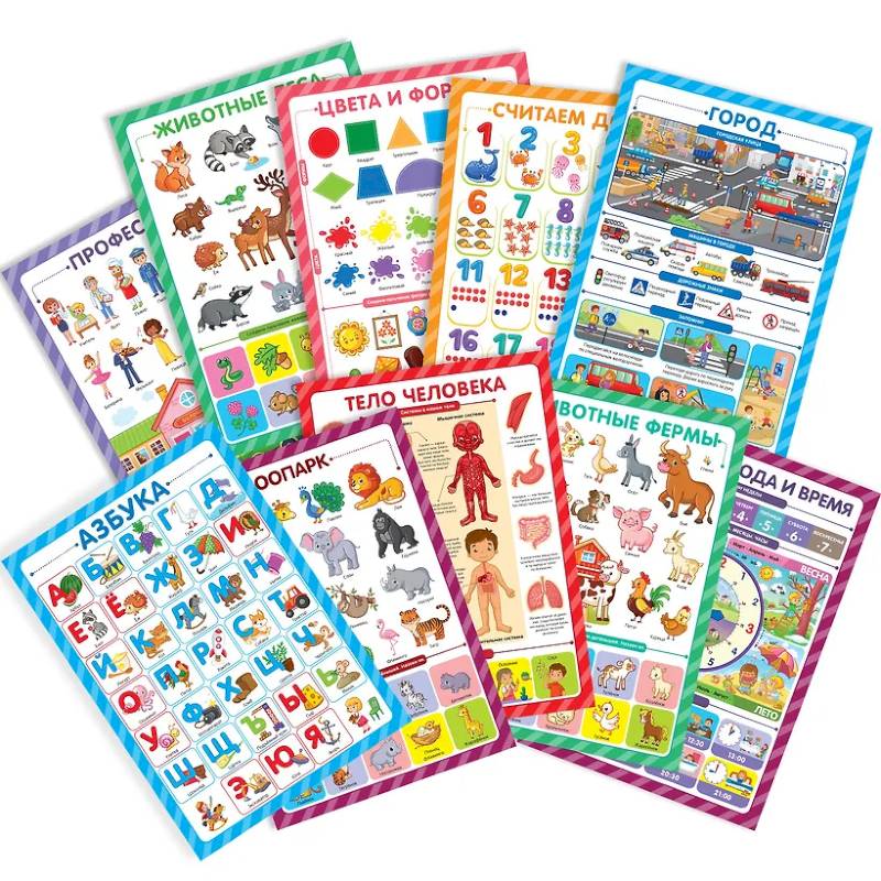 Набор обучающих плакатов для малышей «Знания для дошкольников» — это удобный и красочный способ систематизировать знания, выучить самое важное, оформить рабочее место будущего первоклассника. Это десять самых актуальных тем, которые пригодятся вашему малышу для подоготовки к школе и для гармоничного всестороннего развития: цвета и формы, первый счёт и алфавит, домашние и дикие животные, времена года, сутки и часы, профессии и тело человека. Занимайтесь вместе с плакатами «Знания для дошкольников» — готовьтесь к школе с интереосм и лёгкостью!