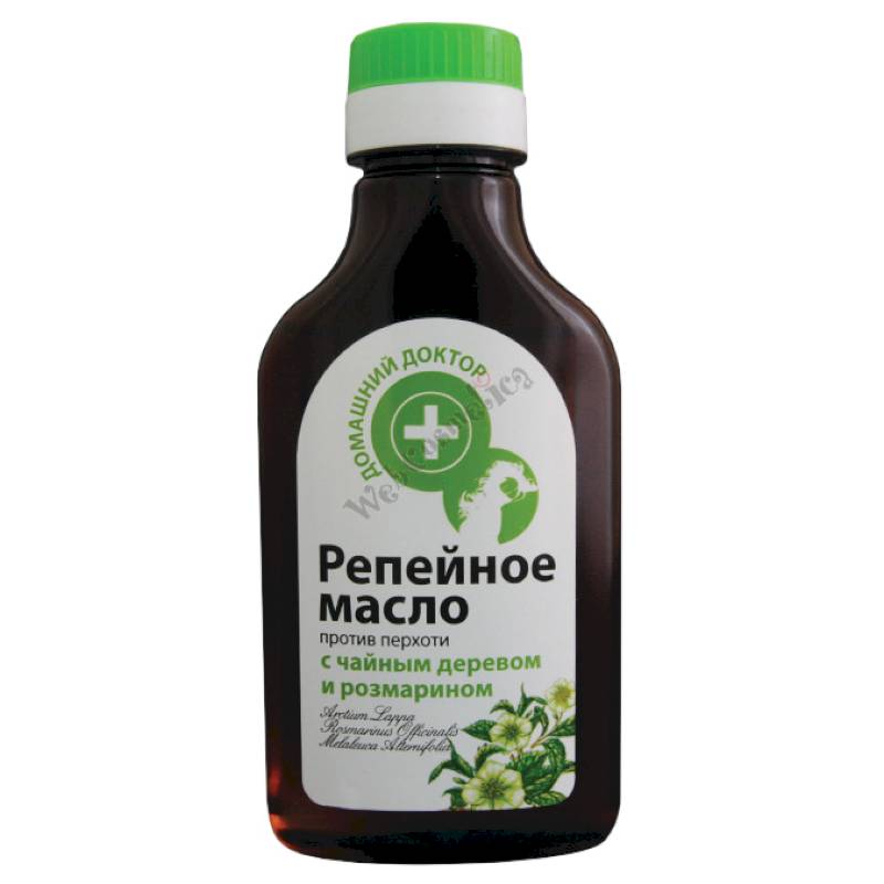Репейное масло в сочетании с эфирными маслами розмарина и чайного дерева активно борется с проявлением перхоти.